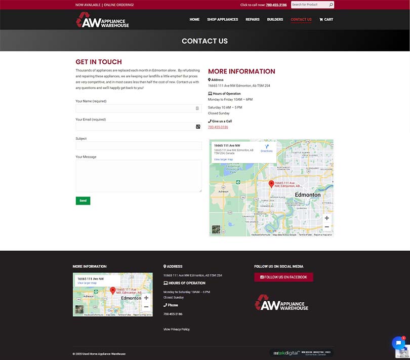 - WEBSITE: www.appliancewarehouse.ca